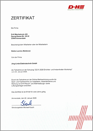 Verrauchung von Räumen verhindert werden. Seit 2024 sind wir für die Installation dieser Sicherheitssysteme geschult und zertifiziert.