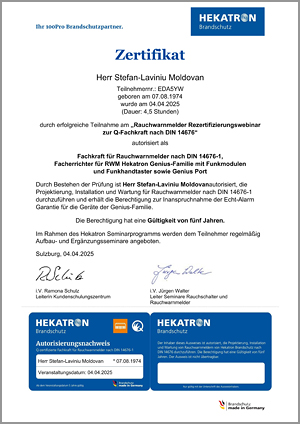 Auch im Bereich Rauchwarnmelder geht die Entwicklung weiter – in der Technik und in Bezug auf die gesetzlichen Vorschriften. Durch die Teilnahme an einem Rezertifizierungswebinar im Jahr 2025 sind wir wieder auf dem neuesten Stand der Technik.